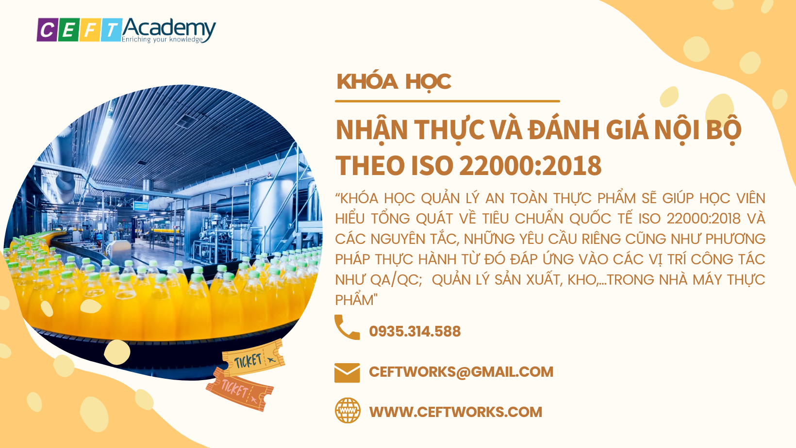 “Khóa học quản lý an toàn thực phẩm của #CEFTworks giúp học viên hiểu tổng quát về tiêu chuẩn quốc tế ISO 22000:2018 và các nguyên tắc, những yêu cầu riêng cũng như phương pháp thực hành, áp dụng tiêu chuẩn này”.