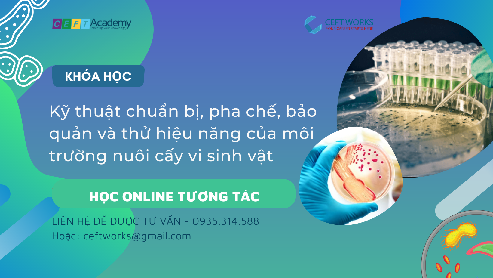 Vì vậy, CEFTacademy đã xây dựng chương trình đào tạo “Tất tần tật các kiến thức về chuẩn bị, pha chế, bảo quản và thử nghiệm hiệu năng của môi trường nuôi cấy vi sinh vật theo tiêu chuẩn ISO” bởi chuyên gia 20 năm kinh nghiệm và đang làm việc ở trung tâm phân tích lớn ở Hồ Chí Minh và chuyên gia đánh giá của BOA (đơn vị cấp chứng nhận 17025 cho phòng thí nghiệm).
