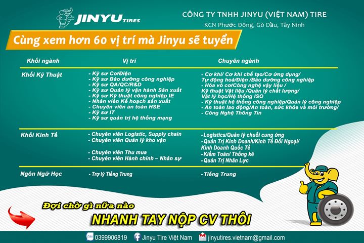 Gửi Application Form + CV vào mail: jinyutires.vietnam@gmail.com