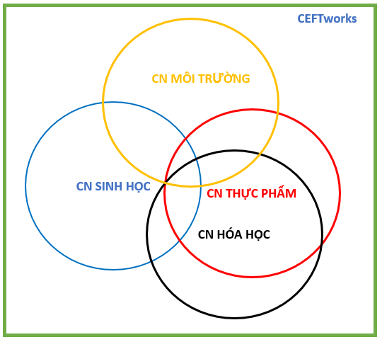 3- Bạn muốn đi làm công: Như sơ đồ giao thoa, nếu bạn muốn làm trong lĩnh vực thực phẩm, bạn đi bổ sung thêm một số kiến thức về quản lý chất lượng, sản xuất, quản lý con người…thì cũng đã đủ để lấn sân sang nó rồi.