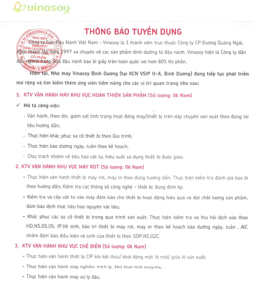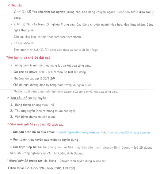 Nhân Viên Sản Xuất (VISIP II - Bình Dương)
