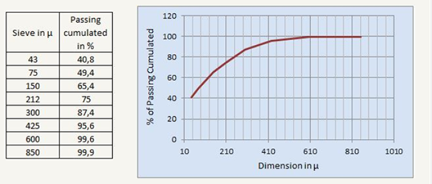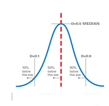 Trong biểu đồ PSD thì giá trị “D” tương ứng một cỡ hạt sẽ thể hiện rằng có bao nhiêu % trên tổng thể hạt có kích cỡ nhỏ hơn mức đó. Lưu ý rằng, D50 là một trung vị, không phải là giá trị trung bình