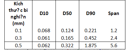 - Trung vị D50 của mẫu 0.1mm có giá trị nhỏ nhất