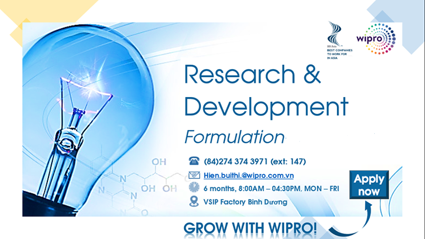 WIPRO TUYỂN DỤNG R&D Staff (Formulation)